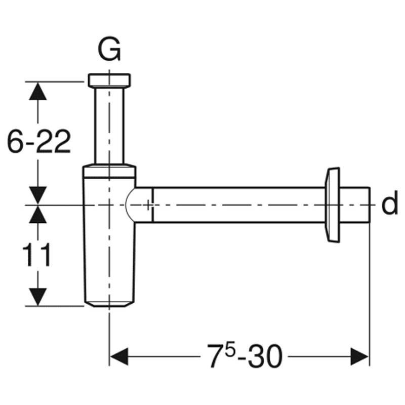 Sifón con tubo de inmersión Geberit para lavabo, con rosetón para descarga, salida horizontal con las siguientes características: