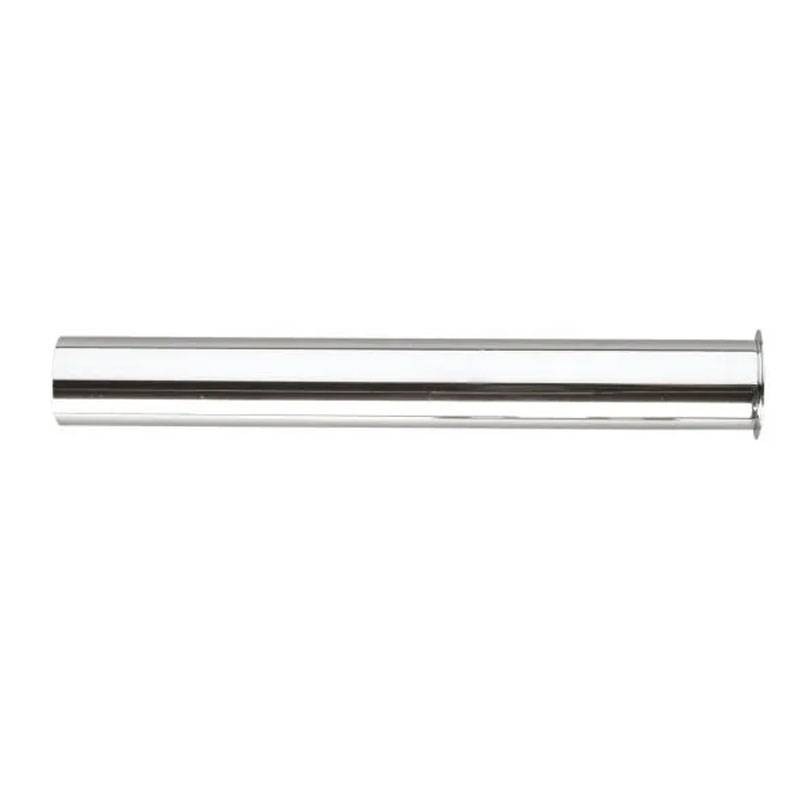 Tubo de desagüe rígido de latón cromado con brida mecanizada directamente en el tubo, diseñado para garantizar una conexión precisa y sólida entre el sifón y el desagüe de pared, especialmente en sanitarios murales o columnares.