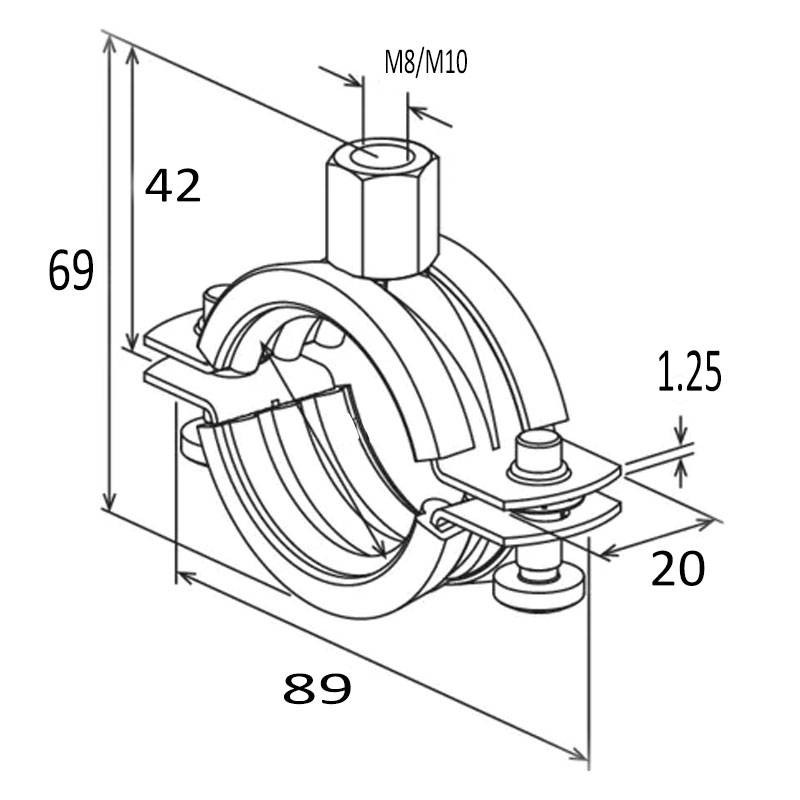 Gracias al sistema de doble tornillo, el collarín se adapta con precisión al diámetro exterior de la tubería, simplificando la instalación. La rosca combinada M8/M10 permite una mayor flexibilidad en la instalación, adaptándose a diferentes requisitos de diseño.