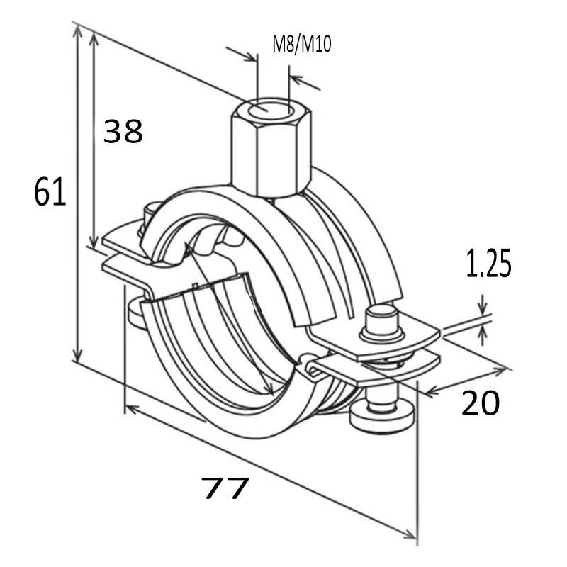 Gracias al sistema de doble tornillo, el collarín se adapta con precisión al diámetro exterior de la tubería, simplificando la instalación. La rosca combinada M8/M10 permite una mayor flexibilidad en la instalación, adaptándose a diferentes requisitos de diseño.