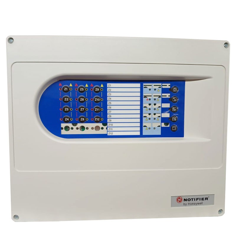 Central de alarma de incendios convencional de 8 zonas Notifier, con las siguientes características: