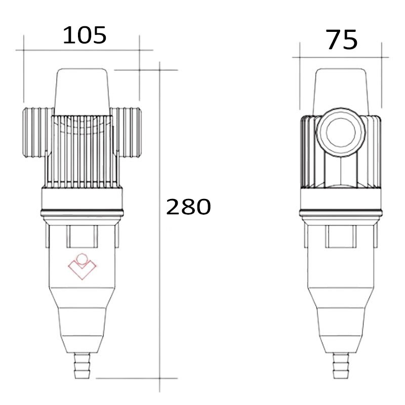 Durante la fase de limpieza, se sigue suministrando agua filtrada a los consumidores, lo que hace que el filtro sea ideal para instalaciones en viviendas plurifamiliares o instalaciones de producción. La operación de limpieza se realiza girando el mando de control, que abre el desagüe y elimina completamente las impurezas acumuladas en el elemento filtrante.