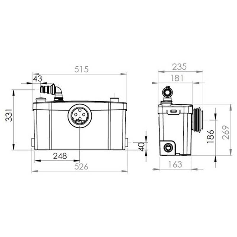 l modelo Saniplus UP SSSUP para grandes volúmenes de agua de la marca Sanitrit SFA es el macerador o estación elevadora de 4 entradas para la descarga y evacuación de aguas residuales o negras de WC, lavabos, duchas y bidés. Permite instalar un cuarto de baño en cualquier rincón de la casa. Compatible con todo tipo de inodoros de cerámica.