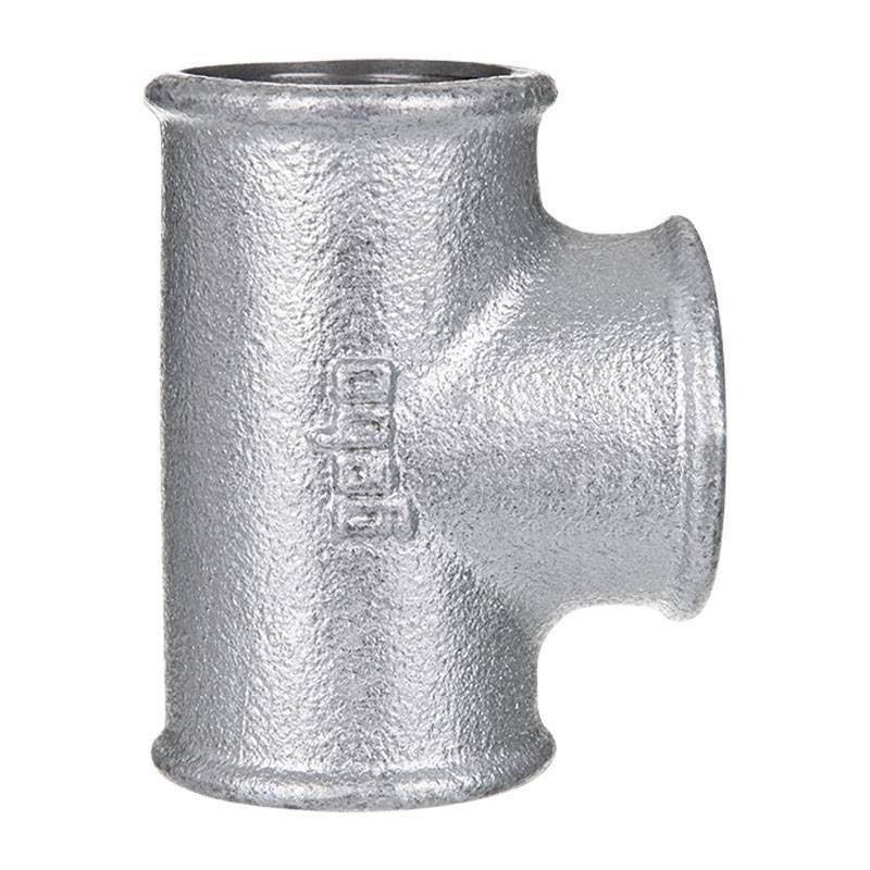 Accesorio a T en hierro fundido maleable Gebo Serie 130, galvanizado en caliente, con rosca hembra para la conexión de tubos de diámetros diferentes. Ideal para instalaciones de alta presión en ámbito civil, industrial y doméstico, con las siguientes características: