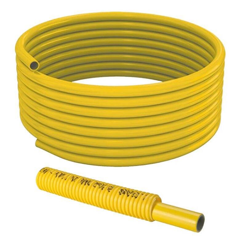 Tubo metálico de plástico multicapa Giacomini PEX-b/Al/PEX-b serie Multigas, tamaño: 32x3. Color: Amarillo.
