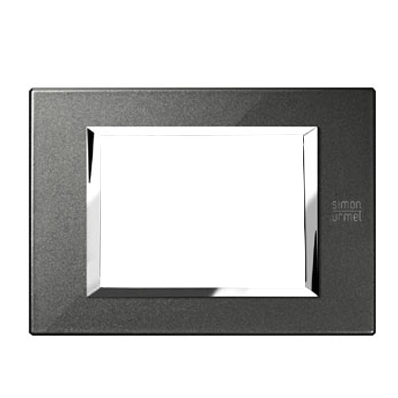 Placa Expì Urmet Simon Nea 3 módulos (frutas, lugares) color negro grafito, de metal. Sólo se puede instalar en el soporte 10703N.