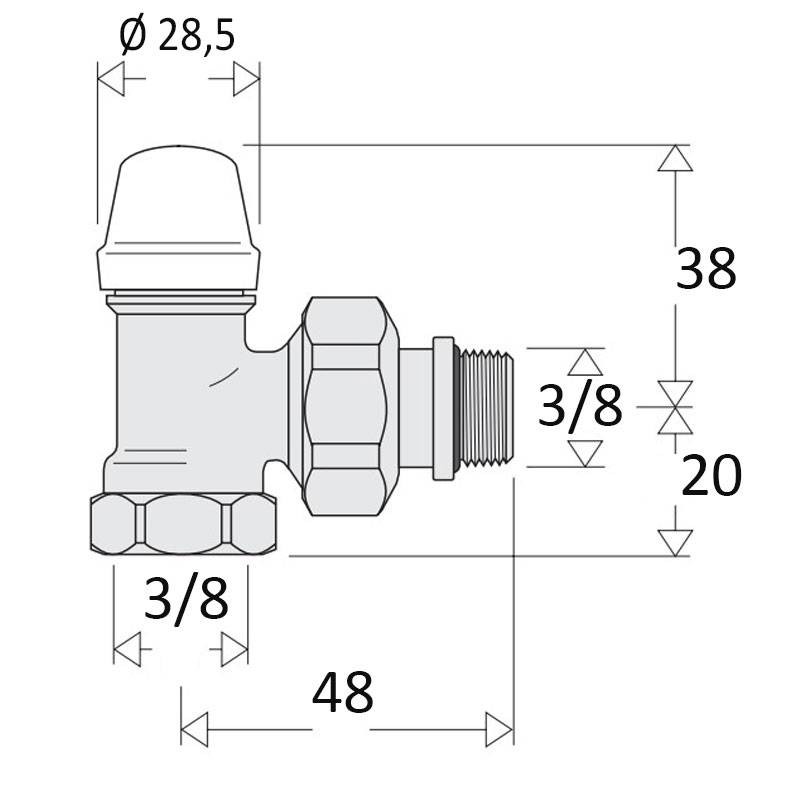 Detentor en Escuadra Caleffi Serie 431 para Radiadores , componente esencial para la regulación del caudal en radiadores, diseñado para ofrecer eficacia y durabilidad, con las siguientes características