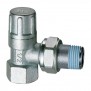- Detentor angular cromado para radiadores con conexión de tubo de hierro, espiga preensamblada, junta entre espiga y cuerpo de la válvula en HPF, doble junta tórica en el vástago, tapón de cierre metálico y caperuza de latón cromado. Temperatura máxima de servicio 95°C. Presión máxima de servicio 10 bar.