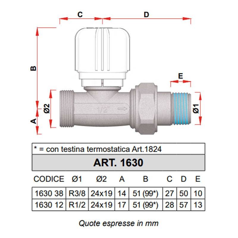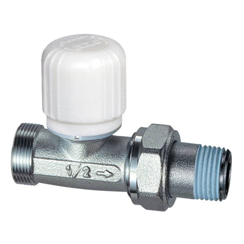 - Válvula termostática recta cromada para radiadores, preparada para la instalación de dispositivos termostáticos o electrotérmicos, con conexión para tubo de cobre, plástico y multicapa, espiga preformada, junta entre espiga y cuerpo de la válvula en HPF, perno intercambiable de acero inoxidable con doble junta tórica y volante en ABS. Temperatura máxima de servicio 95°C . Presión máx. de servicio 10 bar.