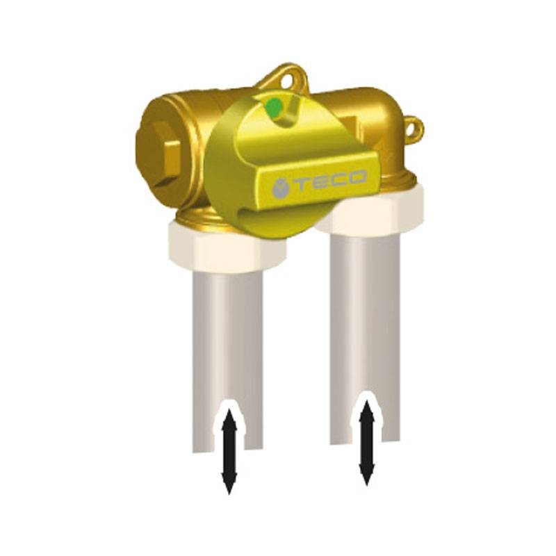 El grifo empotrado Teco K2.1 con salida hacia abajo representa una solución técnica y confiable para instalaciones de gas metano o GLP, diseñada para instalaciones compactas en espacios reducidos. Las conexiones en U verticales facilitan la conexión hacia abajo del tubo de gas, haciéndolo ideal para instalaciones en el suelo o en nichos empotrados. Conforme a la norma DIN 3439, el grifo garantiza hermeticidad absoluta, mientras que la certificación HTB (High Temperature Body) asegura su resistencia hasta 650°C durante 30 minutos, requisito esencial para la seguridad contra incendios de las instalaciones de gas.