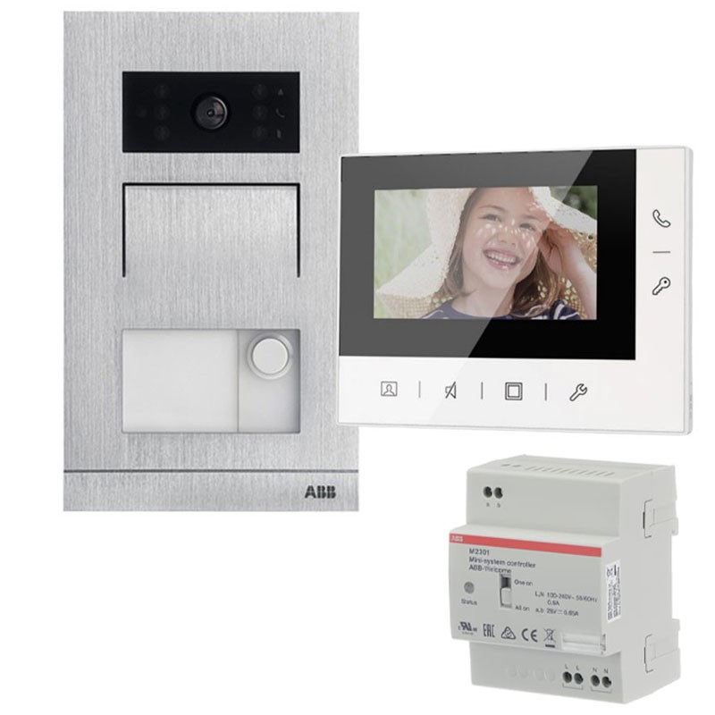 Kit Videoportero Unifamiliar Abb monitor manos libres 2 hilos botonera mural