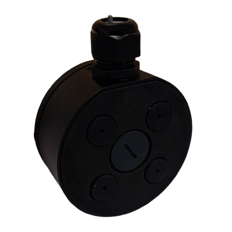 La JunctionBox (118×59) es una caja de montaje impermeable de aluminio negro diseñada para la gestión segura y ordenada del cableado de las cámaras IP Ajax. Con protección IP66, ofrece la máxima resistencia a la intemperie, protegiendo el cableado del agua, el polvo y los daños mecánicos. Ideal para instalaciones interiores y exteriores, se puede montar fácilmente en paredes, techos y columnas de hormigón.