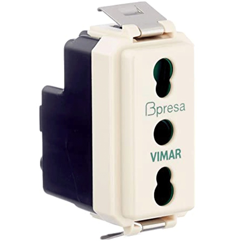 Toma de corriente Vimar 8000 SICURY, 2P+E 16 A 250 V~ norma italiana tipo P17/11, Color: blanco crema.