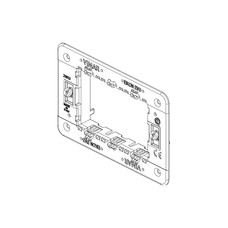 Soporte para cualquier módulo box 3 (frutas) aunque no sea de la marca Vimar. Este soporte permite enganchar sólo las placas Vimar Eikon.