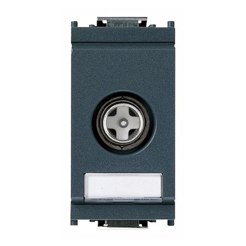 Toma coaxial de TV Vimar Idea, frecuencia 5-2400 MHz, con conector macho, atenuación de derivación 1 dB, 1 módulo, color gris. Permite el paso de corriente continua y de señales de control (24 V 500 mA como máximo).