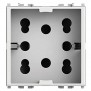 Side 4Box representa una revolución en las inserciones eléctricas: en sólo 2 módulos, esta toma combina la funcionalidad bipass y Schuko, permitiendo conectar simultáneamente hasta tres enchufes -pequeño (10A), grande (16A) y Schuko- sin necesidad de adaptadores.