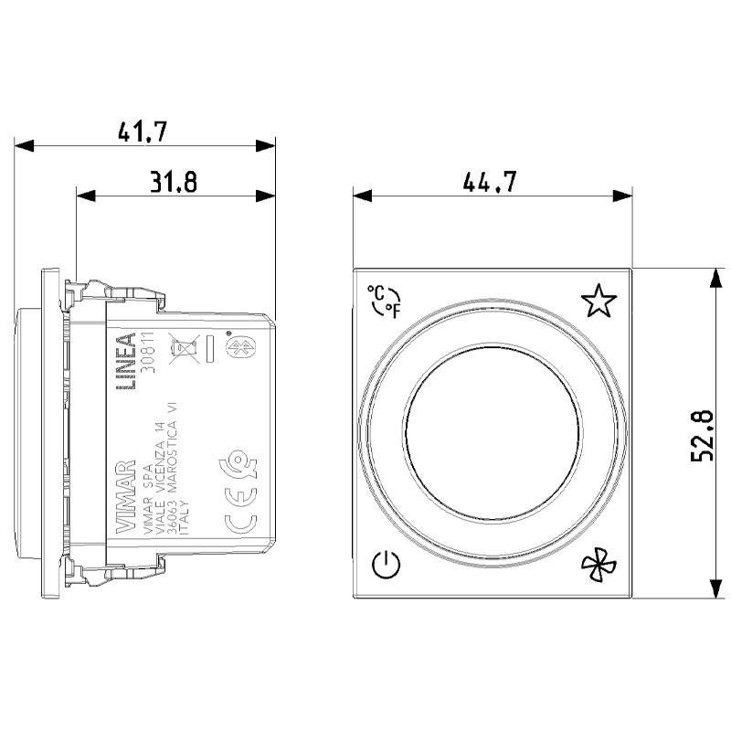 Termostato Vimar Linea Conectado IoT2M 30811.C - Cáñamo, Salida de Relé NO, Control Fan-Coil de 3 velocidades y proporcional y Funcionalidad IoT sobre Bluetooth 5.0.