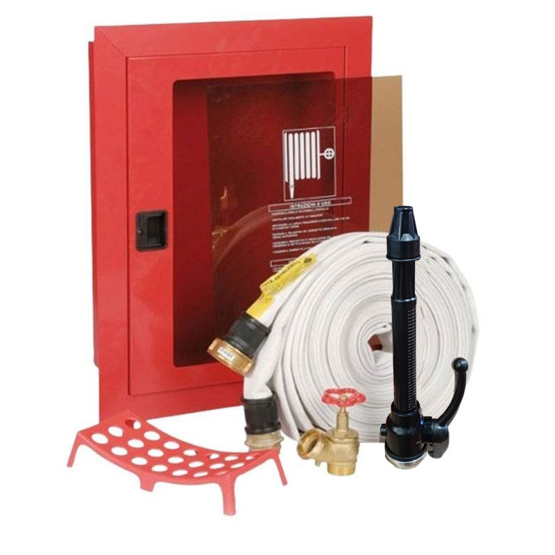 El sistema incluye un grifo hidrante de latón DN 45 PN 16, una manguera flexible DN 45 de 20 metros certificada según EN 14540 con racores UNI 804 y amarres según UNI 7422. El equipo también está equipado con manguitos de goma, un protector de manguera rojo y una lanza UNI 45 con tres efectos, disponible en los modelos Black, Florida, Gold, Roto Ø12 y Arizona Ø13, para adaptarse a todas las necesidades operativas.