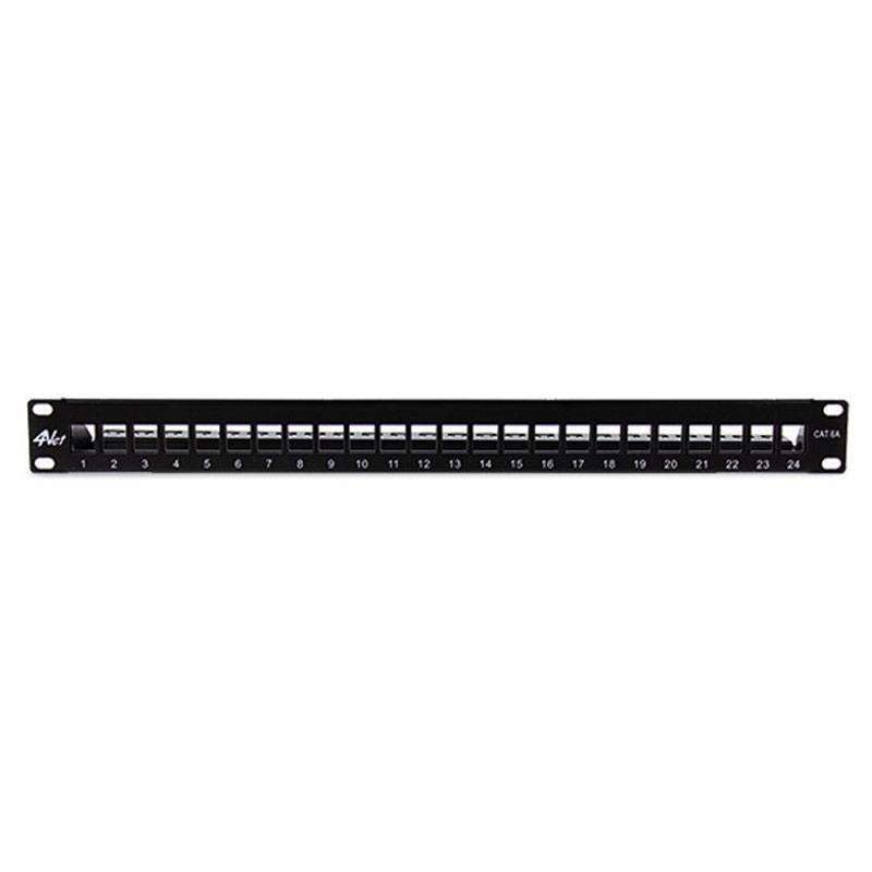 Patch Panel 4 Power 19 pouces avec 24 ports, vide, de forme rectangulaire.