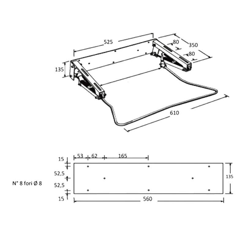 Mécanisme pneumatique pour lavabo fixe art.410 Thermomat en acier galvanisé et peint. Inclinaison maximale de 300 mm. Actionnement par la barre frontale.