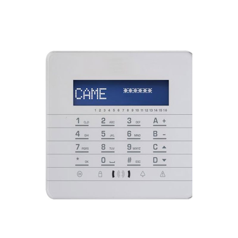 Centrale d'alarme intrusion avec 8 points de connexion filaires extensibles jusqu'à 32 points de connexion filaires ou radio. Comprend 1 sortie relais locale, 1 ligne de bus RS485 pour connecter des modules d'extension, des claviers et des lecteurs de clés à transpondeur. Interface LAN intégrée pour la connexion à distance via Came Cloud, l'interface avec les systèmes domotiques Came Domotic 3.0 et l'intégration aux systèmes de vidéosurveillance IP Onvif. Prise en charge de 4 zones et de 32 scénarios pour la gestion du système. Connexion au réseau RTC et au réseau GPRS/3G via des modules optionnels.