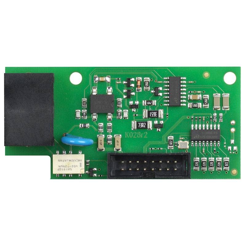 - Installation enfichable sur la carte du panneau de contrôle via un connecteur intégré, connexion à la ligne téléphonique via un connecteur RJ-11 standard.
