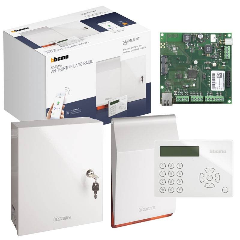 Kit d'alarme anti-intrusion Bticino connecté filaire pour la gestion de 16 zones composé de: