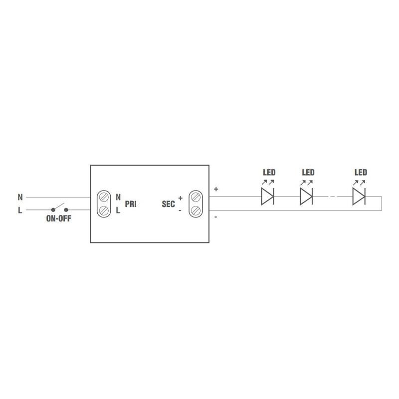 Driver d'alimentation Led LEF à courant constant IP20 ON/OFF avec les caractéristiques suivantes :