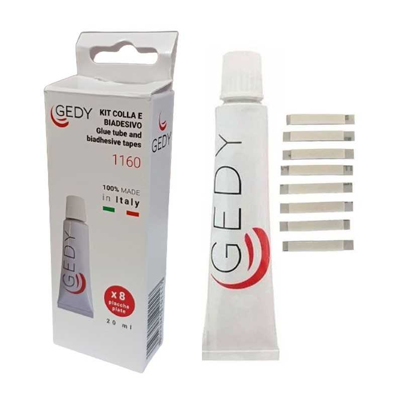 Kit colle 20 ml avec 8 plaques adhésives Gedy pour accessoires de salle de bain