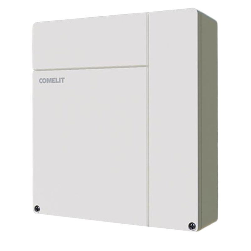 Boîtier plastique de l'unité centrale en 1 pièce, bloc d'alimentation 1,5A (code VEDO10) : Unité de contrôle d'alarme de la série Vedo dans un boîtier mural en ABS ignifugé avec une alimentation à découpage de 1,5A. Equipé de 8 zones embarquées, extensibles à 18 (2 zones clavier et 8 zones radio), 1 zone 24 heures, communicateur téléphonique RTC intégré, bus série RS485 pour la connexion de modules supplémentaires, 1 sortie relais et 2 sorties collecteur ouvert. Gère jusqu'à 2 zones avec 2 programmes de commutation (scénarios) différents et des minuteries quotidiennes, 2 lecteurs de proximité, 2 claviers Safe Key, 1 Safe Touch, 1 Planux/Mini Touch Manager et 1 récepteur radio. Fusible à réarmement automatique pour la sortie de puissance de la sirène, le bus série RS485 et l'alimentation du capteur. Equipé d'un port USB pour la connexion à un PC avec le logiciel de configuration Safe Manager. Toutes les zones sont configurables en tant que NC, NO, simple, double et triple équilibrage. Dimensions (L x H x P) 260 x 280 x 80 mm. EN50131 grade 2. Compatibilité avec le portail de gestion des installations Mycomelit.