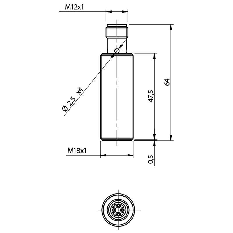 Capteur inductif Datasensing PRX M18 SCH PNP NA avec connecteur M12 avec les caractéristiques suivantes :