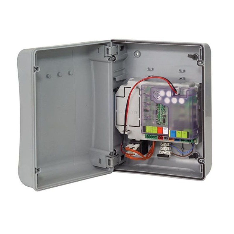 - Sorties du bornier : Moteurs, Clignotants, Alimentation accessoires, Serrure électrique, Contact lampe de service (90 sec fixe)