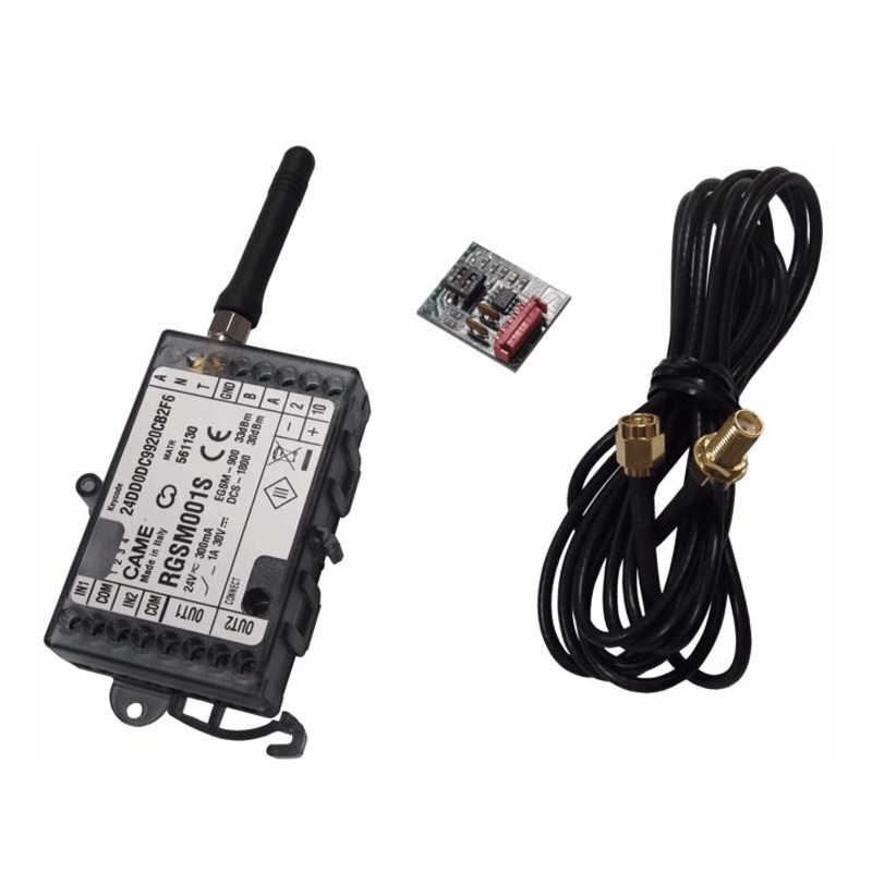 Module Came GSM Gateway stand-alone, pour la gestion à distance d'un ou plusieurs automates CAME (max 3) via CAMEConnect. Equipé de 2 entrées numériques, 2 sorties relais, interface 485 et carte GSM.