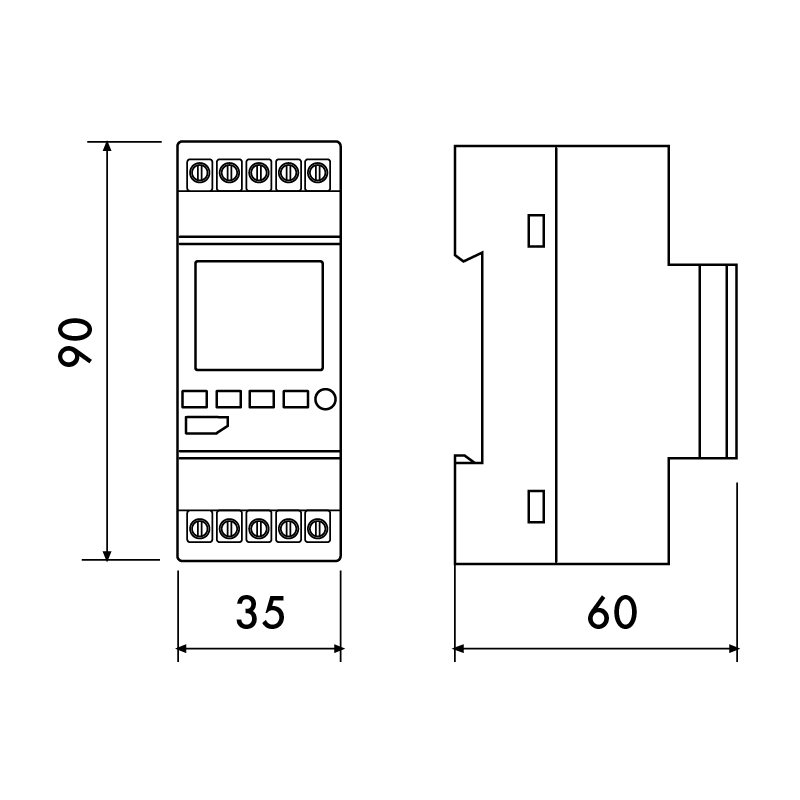 - Dimensions (LxPxH) 35 x 60 x 90 mm