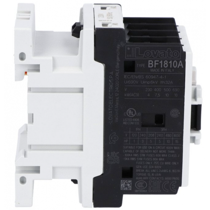 Contacteur tripolaire Lovato 18A 1 contact de bobine auxiliaire 24VAC BF1810A024