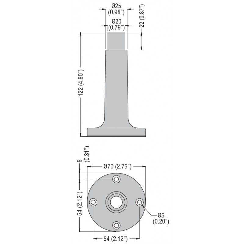 Base de fixation Lovato, pour colonne de signalisation et balises, montage mural horizontal, diamètre 62/ 2,44 - 70, pouce 2,75, couleur noire, matériau plastique, poids 45 g.