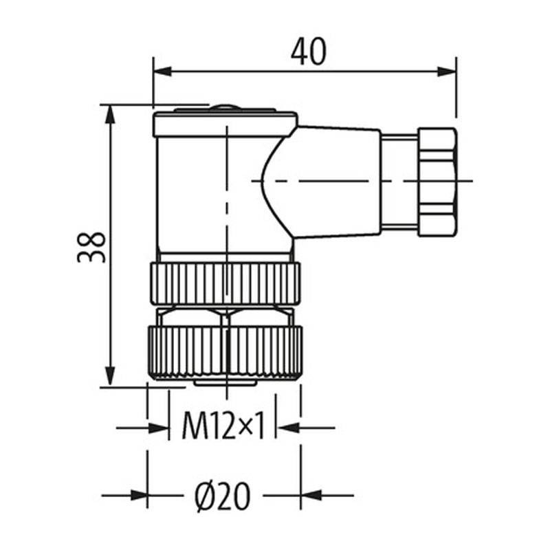 Connecteur Murr M12 femelle 90° pour le câblage des bornes à vis avec les caractéristiques suivantes :
