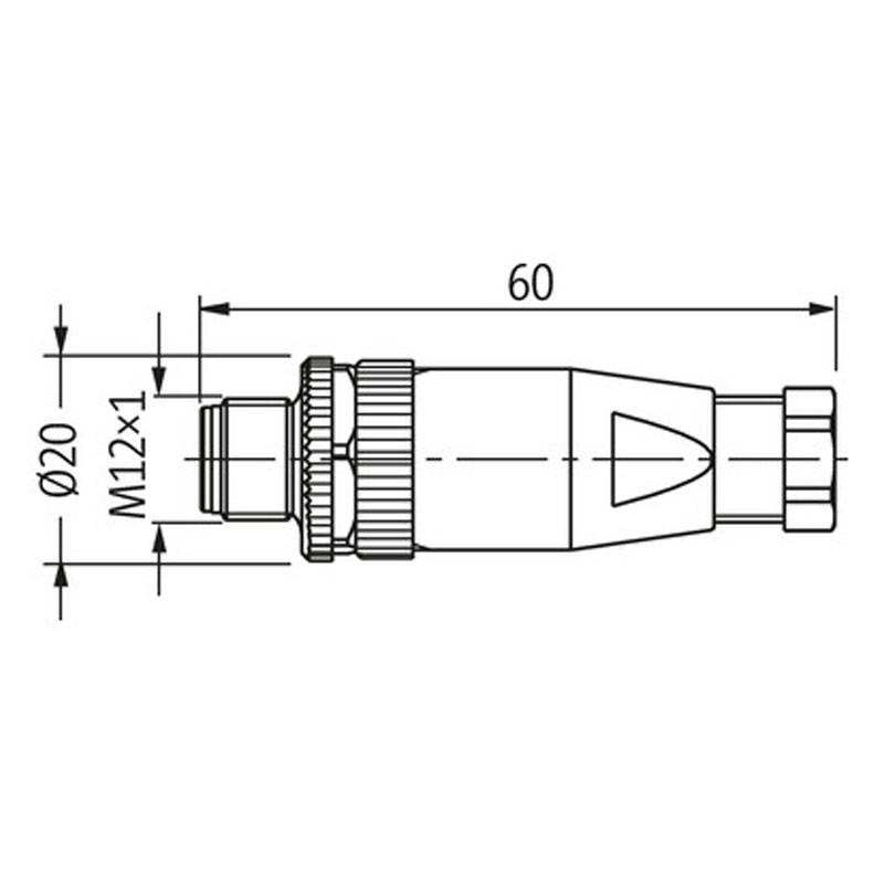 Connecteur Murr M12 mâle 0° pour câblage de bornes à vis avec les caractéristiques suivantes :