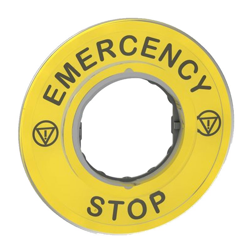 L'étiquette circulaire Harmony de Schneider Electric est de couleur jaune. Elle est compatible avec Harmony XB4 et XB5, a un diamètre de 60 mm et porte la mention "EMERGENCY STOP". Cette étiquette circulaire indique clairement les dispositifs d'arrêt d'urgence. Elle est livrée déjà gravée d'un marquage relatif au fonctionnement de la machine et est compatible avec n'importe quelle unité d'arrêt d'urgence ou d'arrêt standard Harmony.