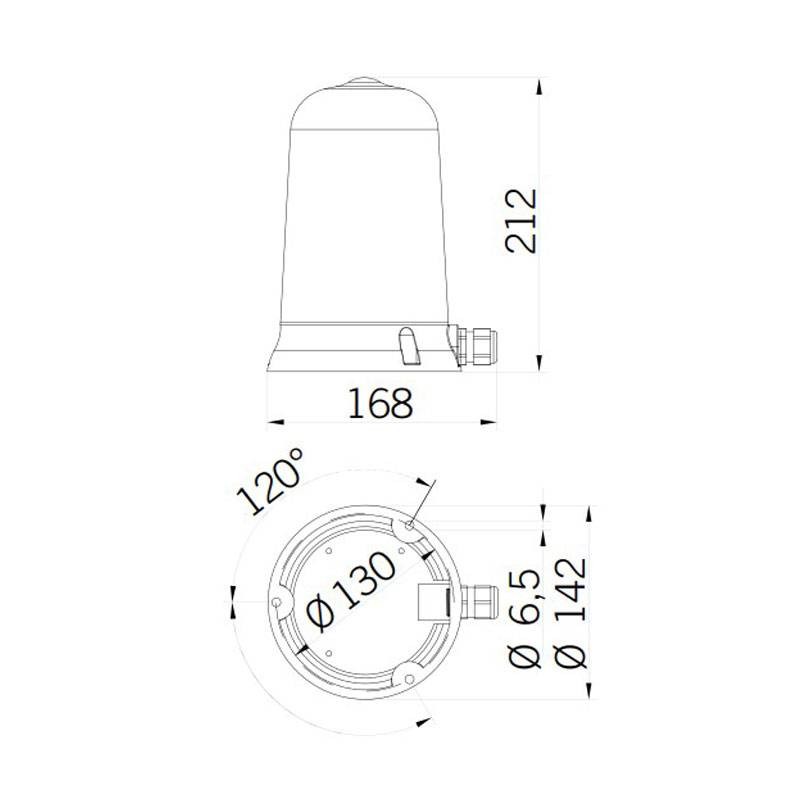 Feu de signalisation disponible avec une lampe à incandescence. Sa conception garantit une grande résistance aux chocs et aux vibrations et un indice IP élevé.