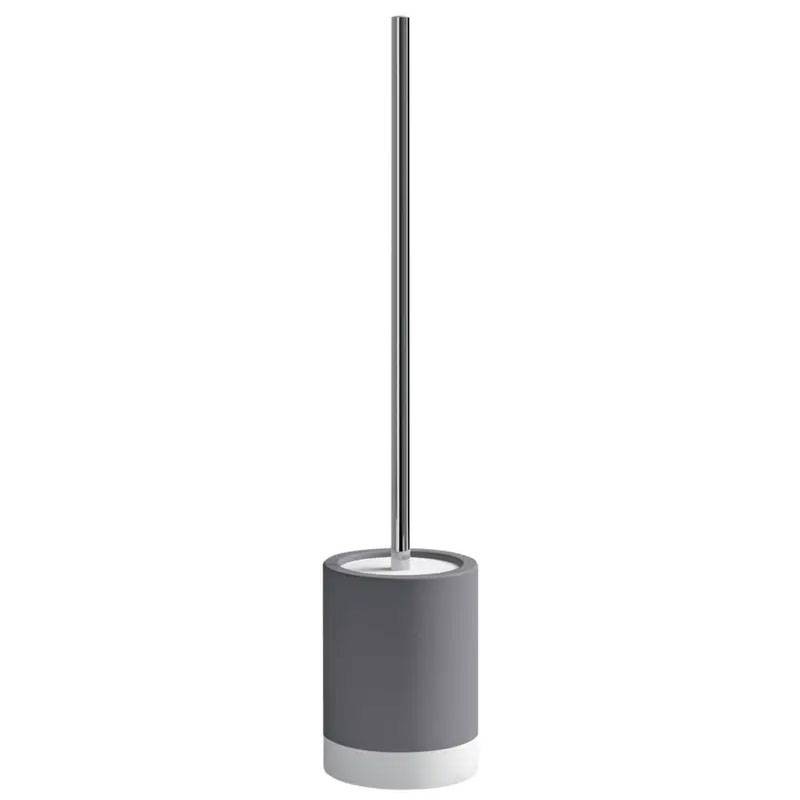 Pot à balai Gedy New Mizar gris, en céramique, avec touffe de poils, poignée chromée, dimensions diamètre 9,7x47,5cm.
