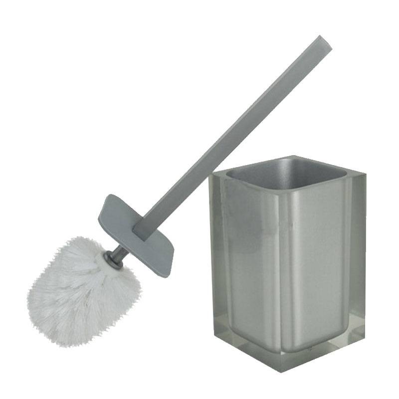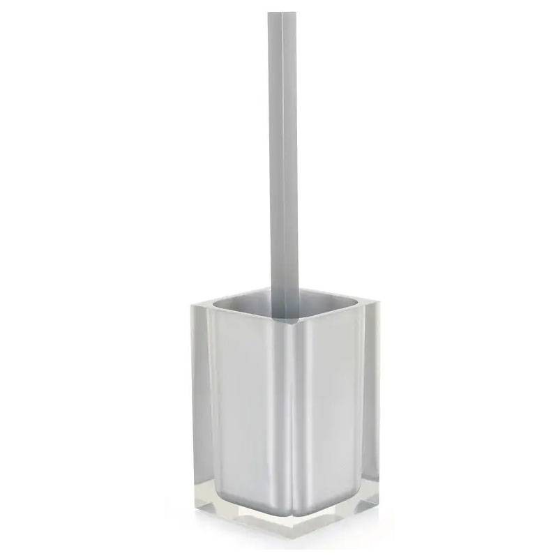 Pot à balai Gedy Rainbow couleur argent, en résine, avec brosse de toilette et poils, dimensions 9,8x9,8x37,5cm.