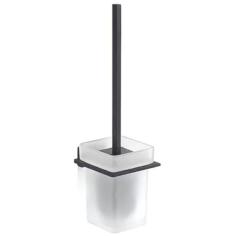 Pot à balai mural Gedy Atena noir mat, avec récipient en verre dépoli, en acier et Cromall, dimensions 10,2x12x37,5cm.