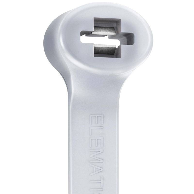 Colliers de serrage 6.6 Elematic en polyamide avec système de verrouillage innovant à double denture en acier inoxydable, présentant les caractéristiques suivantes