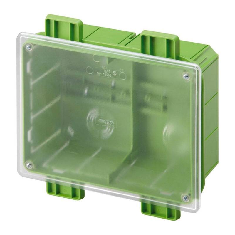 La boîte de dérivation encastrée de la série Green Wall de Gewiss est une solution avancée et polyvalente pour l'installation de systèmes électriques dans les cloisons légères et les plaques de plâtre. Réalisée en technopolymères sans halogène, elle garantit la sécurité et la conformité aux normes, en offrant la praticité pour la préparation et l'installation des dispositifs domotiques, avec les caractéristiques suivantes