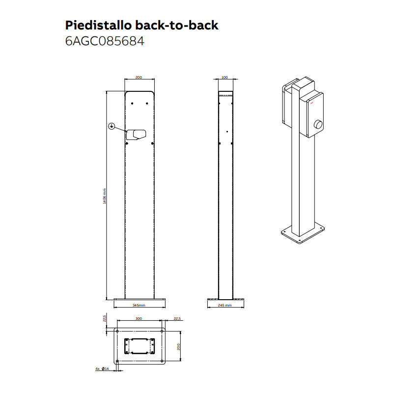 Stand Abb pour deux Terra AC Wallbox Chargers, pour une installation autonome à l'intérieur ou à l'extérieur peut être utilisé comme alternative au montage de la station de charge sur le mur.