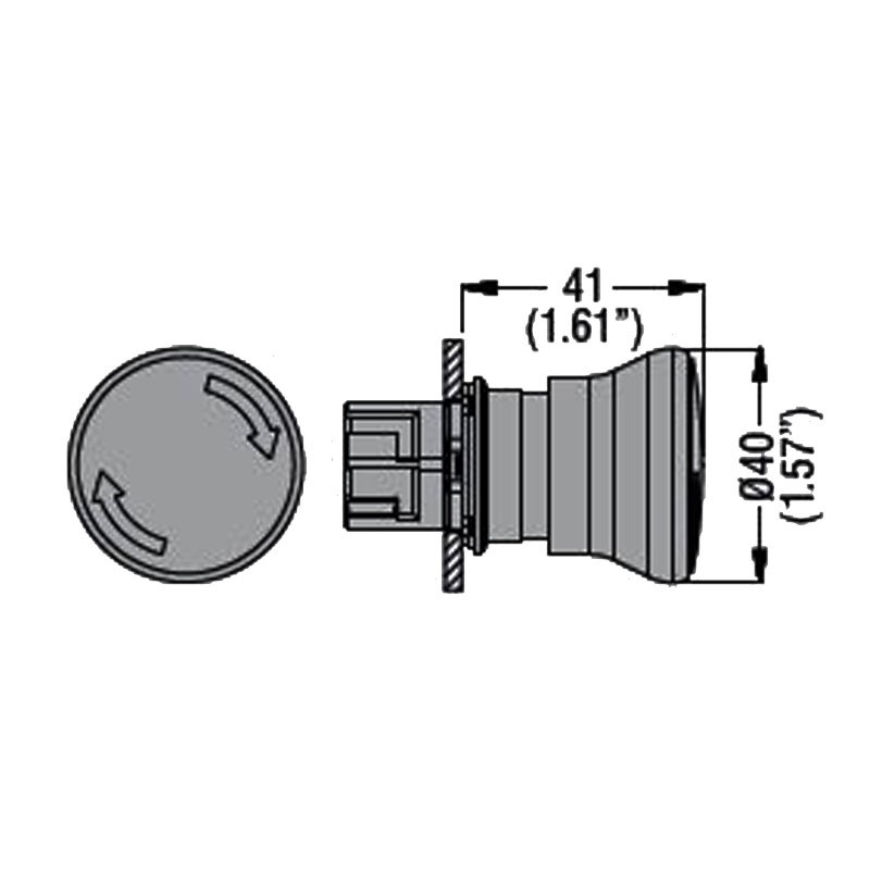 Bouton coup de poing Lovato Platinum diamètre 40mm, avec fermeture auto-agrippante, déclenchement rotatif, couleur Rouge, application arrêt d'urgence, conforme à la norme ISO 13850.