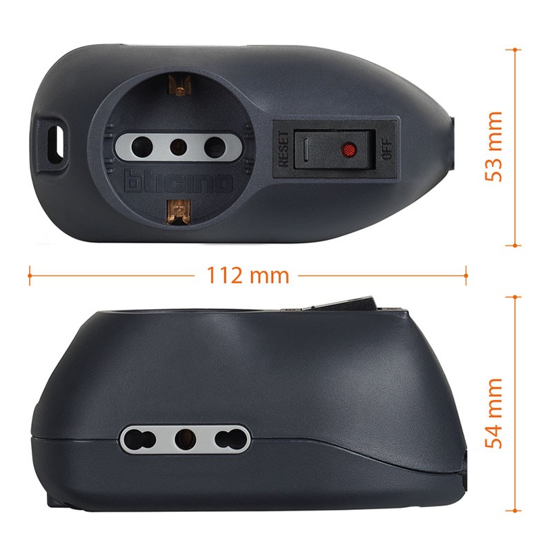 Prise multiple Bticino SLOT3, avec les caractéristiques suivantes :