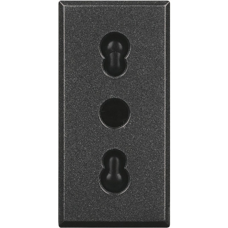 Prise électrique double pas Bticino Axolute Gris Anthracite. La prise électrique à double pas vous permet d'y insérer à la fois les fiches de 10A (petites fiches) et les fiches de 16A (grandes fiches) HS4180.