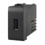 Chargeur USB 2,1A pour smartphones et tablettes, 1 module, couleur gris anthracite. Le chargeur se monte uniquement sur les supports Bticino Axolute. Déjà alimenté, il suffit de le connecter au réseau électrique de la maison.